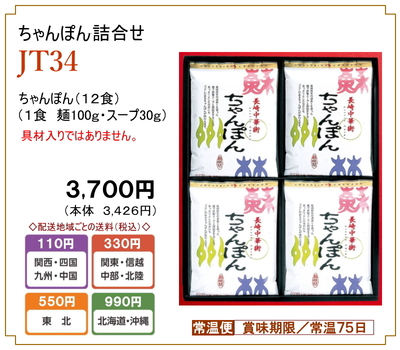 「ちゃんぽん詰合せ」JT34(ちゃんぽんのセット)〔常温便〕 ツイートする シェアする 販売価格: 3,700円(税込み) 会員価格 (税込み) 通常価格 (税込み) 在庫 商品コード JT34 JANコード 数量 - + カートに入れる カテゴリー 〔常温〕ギフト(麻花兒・中華菓子・ちゃんぽん・皿うどんのセット)