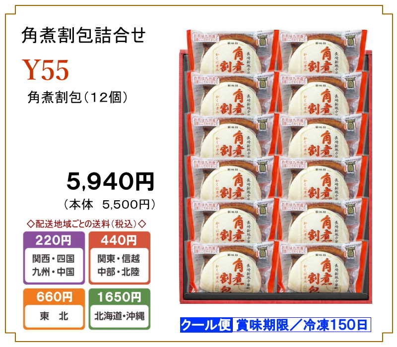 「角煮割包詰合せ」Y55〔クール冷凍便〕 ツイートする シェアする 販売価格: 5,940円(税込み) 会員価格 (税込み) 通常価格 (税込み) 在庫 商品コード Y55 JANコード 数量 - + カートに入れる カテゴリー 〔冷凍〕ギフト(具入ちゃんぽん・具入皿うどん・角煮割包・中華まん・点心のセット)