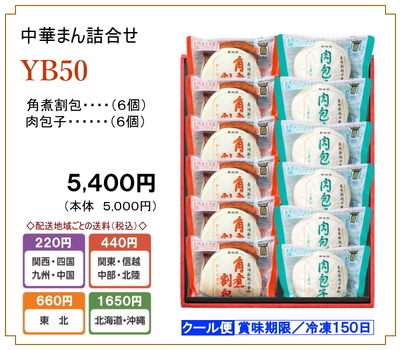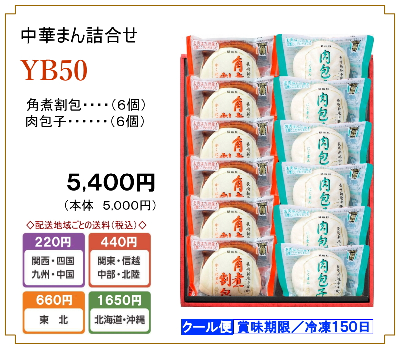 「中華まん詰合せ」YB50(角煮割包・肉包子のセット)〔クール冷凍便〕 ツイートする シェアする 販売価格: 5,400円(税込み) 会員価格 (税込み) 通常価格 (税込み) 在庫 商品コード YB50 JANコード 数量 - + カートに入れる カテゴリー 〔冷凍〕ギフト(具入ちゃんぽん・具入皿うどん・角煮割包・中華まん・点心のセット)