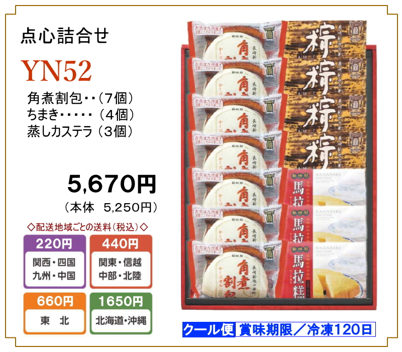 [点心詰合せ」YN52(角煮割包・粽子・蒸しカステラのセット)〔クール冷凍便〕 ツイートする シェアする 販売価格: 5,670円(税込み) 会員価格 (税込み) 通常価格 (税込み) 在庫 商品コード YN52 JANコード 数量 - + カートに入れる カテゴリー 〔冷凍〕ギフト(具入ちゃんぽん・具入皿うどん・角煮割包・中華まん・点心のセット)